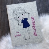 Diese aufwendig bestickte Zeugnismappe ist ein schönes Geschenk zum Schulanfang oder jedem anderen festlichen Anlass.